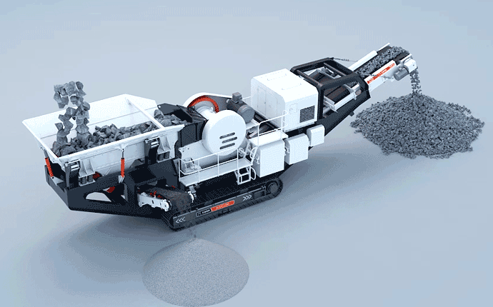 1.進(jìn)料:原料通過裝載機(jī)或挖掘機(jī)等裝載設(shè)備將破碎物料送入移動式破碎機(jī)的進(jìn)料口。進(jìn)料系統(tǒng)通常包括振動給料機(jī),它能夠?qū)⒃暇鶆虻厮腿肫扑榍弧?/p>