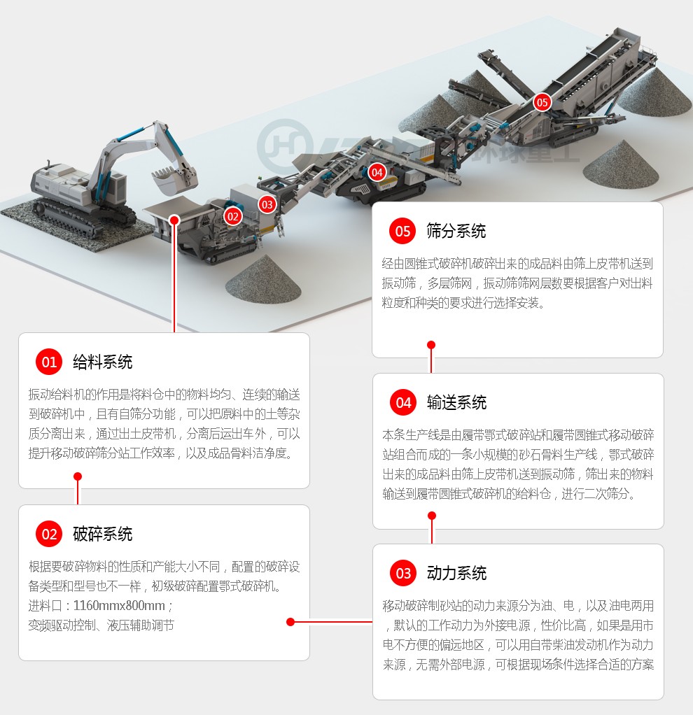 設(shè)備保留了履帶式設(shè)備移動轉(zhuǎn)場的便捷性、現(xiàn)場快速生產(chǎn)的優(yōu)越性。
